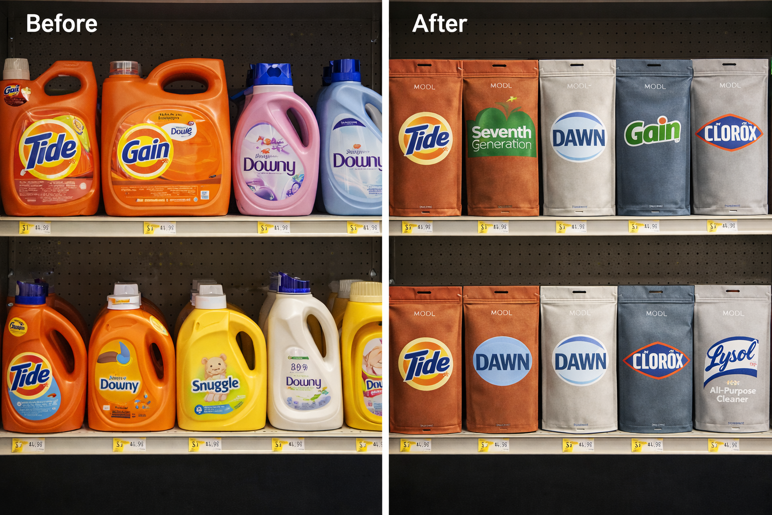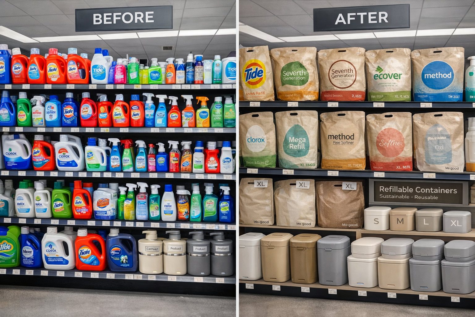 bio-good is designed to carry every household brand — Tide, Dawn, Seventh Generation, Clorox, and new indie trusted brands — in a refillable format. Partner licensing available.