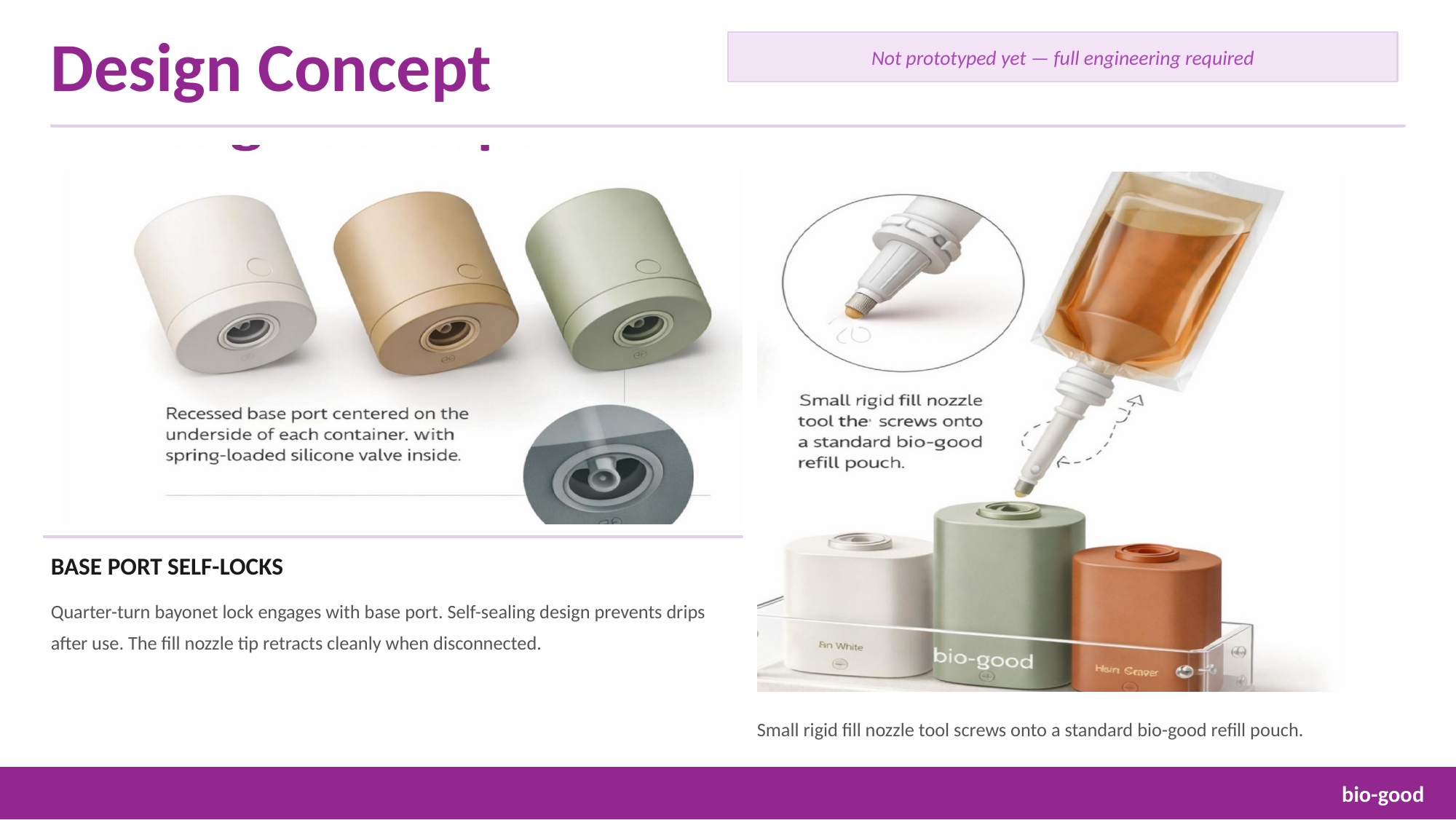 Bio-Good's patent-pending NeuroRefill™ system combines precision magnetic stacking, a spring-loaded bottom-fill valve, and an embedded tracking chip — all protected under a single systems-level patent. Competitors can't copy one piece. They'd have to rebuild the entire platform.